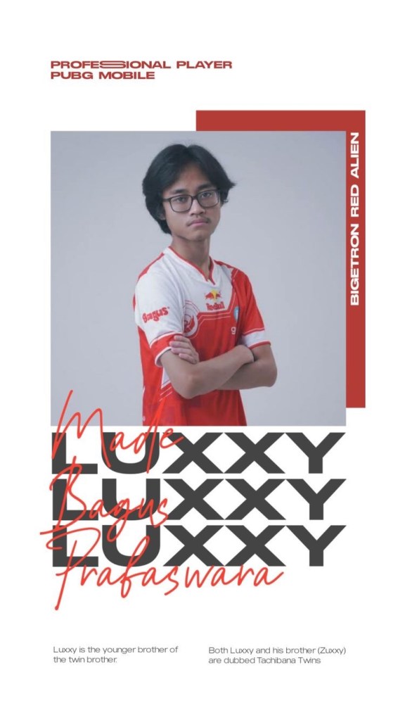 Made Bagus “Luxxy” Prabaswara (born May 31, 2003) is an Indonesian Professional PUBG Mobileplayer who is currently playing for Bigetron RA as Sniper.
